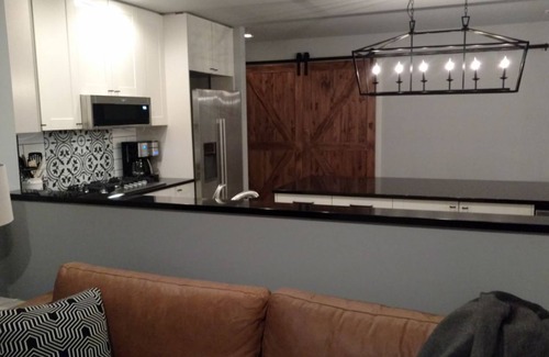 Welcome to Uncorked cottage! This newly built cottage (built 4 years ago) is tucked away on a quiet stone drive, among birds and trees, and an easy 5 minute walk to public beach (Mckinley). Brand new build with open concept living. First floor is kitchen, dining, living room, bathroom, washer and drier. Open concept with concrete floors, barn doors, and reclaimed barn wood beam. Second floor hard wood, high ceilings, 2 bedrooms (1 king and 1 queen), bunk room that sleeps 4, and full bath.