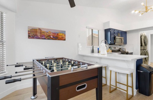 This charming 6-bedroom, 2-bathroom home is the perfect getaway from the hustle and bustle of the Strip. Recently furnished with modern decor, it offers a stylish and comfortable retreat. With a private pool and spacious patio, the home is ideal for outdoor entertainment and relaxation, making it the perfect place to unwind and enjoy your stay.