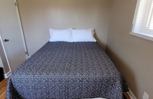 This is a newly remodeled three bedroom home. Accommodations for five people with one twin bed and 2 queen beds. The bathroom has a large, low step shower with a detachable shower head and small toiletries are provided- (shampoo/conditioner/soap/lotion/razor/toilet paper). All linens are provided for the beds and bathroom. The kitchen is stocked with cookware and dinnerware. We also keep paper towels/salt/pepper/oil on hand for your convenience. Washer and dryer located just off the kitchen. Living room area has a comfy couch and chair you can relax in and a 50-inch TV signed in to Netflix.