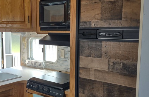 Looking for a place to stay while visiting the lake? Look no further. This newly remodeled travel trailer sets on a 35 acre farm with plenty of parking for all your lake toys.