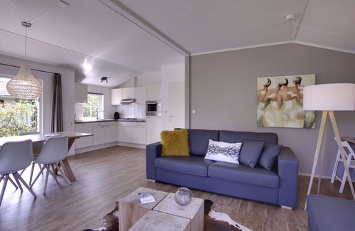 The 4-persoons bos is a 3-room chalet with an area of 55 square meters. It features a comfortable entrance hall, a living/dining room with a dining table, a flat-screen TV, and a CD player. The living/dining room also has an exit to the terrace. There are two double bedrooms, each equipped with two beds. The open kitchen comes with four hot plates, a dishwasher, an electric coffee machine, and a combination microwave. Additionally, there is a shower/WC.
