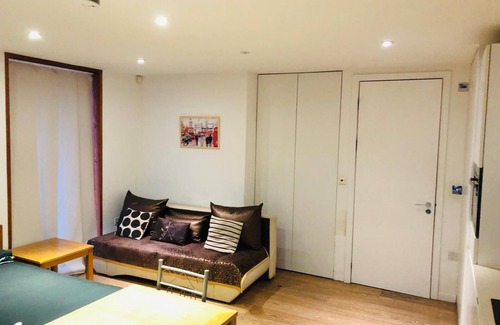 Please come and enjoy a peaceful stay at this delightful studio in London. The cozy space features 1 full bed and 1 sofa bed, perfect for a small group of guests. With amenities like WiFi, a washing machine, and a hair dryer, your stay will be convenient and comfortable. The bathroom includes a shower and another hair dryer for your use. We look forward to hosting you at our place.