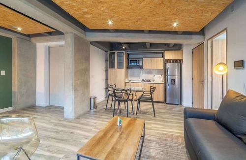 This 60 m^2 apartment in Chapinero is designed for upscale guests seeking to immerse in the city's vibrant culture without sacrificing an exclusive living experience. Tailored for both short and long stays, the apartment offers a unique blend of industrial colors and minimalistic design, creating a sophisticated urban aesthetic. Keyed elevator access provides direct entry from the lobby to the apartment, ensuring privacy and convenience.