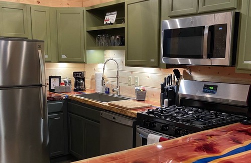 The Caddis Cabin is in the heart of Norfork's downtown area and is within walking distance to our local brewery! Norfork Brewing Company can provide you with a much-needed cold beverage after your trip to the beautiful Norfork or White Rivers! With a local grocery right next door, you can easily grab anything you need to make your stay excellent!