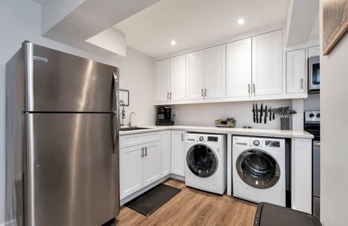 This is a 1 bedroom 1 bath basement guest suite that offers a lot of privacy. Inside you will be greeted with an open floor plan and your own private internet and a/c unit. Dog bowls and dog beds are also available.