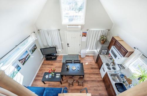 Private, safe, & close to everything (<90 seconds to highways in all directions!), with private off-street parking & a private fenced yard, my newly built 500 sqft Not-so-Tiny Home is walkable to coffee shops, bars, & restaurants, and 1 mile from Scott’s Addition, the mecca of Richmond’s brewery & restaurant scene. Designed for medium and longer stays for couples & solo travelers, this completely private and detached guesthouse has high-speed Internet, streaming services and TVs in multiple rooms, and dedicated work space. It is also pet-friendly! While more than 2 people may feel tight for longer than a week, it can host up to 4 for shorter stints in a ground-floor queen bedroom, a full bedroom loft (with room to stand), & a sleeper sofa in the living room! I'm a born and raised Richmonder and live in the main house on the property, so I'm also available to help offer real estate and career advice for those looking to relocate to our wonderful city :-)