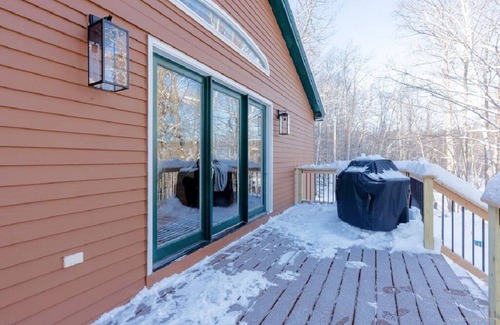 A true Maine experience. Spacious and welcoming - the real getaway you're seeking. Beautifully private wooded road, very quick drive to South Ridge, Foggy Goggle. Hop right on South Ridge Express Lift in just a few minutes. Open floor plan ideal for large or multi-families; family room, dining area, open kitchen, master ensuite, three full baths. Plenty of beds with mixed bed sizes and a downstairs for separate enjoyment, too. Soft, warm linens to cozy into after a day slope side; enjoy cocoa and totties next to the woodstove, while watching the snow fall or catching a winter flick. Lots of fun here - everything to fulfill your winter getaway needs. Great home for gatherings, hosting family or celebrating the Maine simple life!