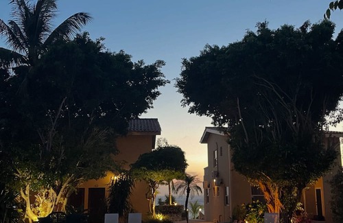 Ocean Apartments 18 and 19 at Lagun Blou Dive & Beach Resort: the hidden gem of Curaçao. Here you can escape the hustle and bustle and immerse yourself in authentic island life. Enjoy pristine beaches, exciting adventures, and the authentic charm of Curaçao. Our apartments are located on a cliff in the westernmost part of the island, a stone's throw from the iconic Playa Lagun beach. This tranquil beach is renowned not only for its excellent snorkeling and diving opportunities, but also for the daily spectacle of local fishermen bringing in their fresh catch. Wake up each morning to the soothing sound of the turquoise Caribbean Sea and start your day with a refreshing dip. From your private terrace, you can see rustling palm trees, colorful bougainvillea, and breathtaking views of the sunset while enjoying freshly caught tuna prepared on the grill. Lagun Blou Dive & Beach Resort (https://lagunblou.com/) is located on the west side of Curaçao, directly on the turquoise Caribbean Sea, surrounded by the most beautiful beaches and unspoiled nature. Stay in one of the 15 beautiful villas with a total of 22 private apartments, tucked away on the cliff of Lagun. All villas are built in authentic Caribbean style, with air-conditioned bedrooms and comfortable queen-size beds. Surrounded by local flora, you can relax in the jacuzzi with breathtaking views of the ocean, or walk down the stairs for direct access to the Caribbean Sea. A stone's throw away is Playa Lagun beach, where you can enjoy fantastic snorkeling and diving. In addition, you will also find other beautiful coral sand beaches nearby, such as Playa Kalki, Playa Forti, Grote Knip, and Kleine Knip. Also nearby is Christoffel Park, a national park surrounding Christoffelberg (Mt Christoffel), inviting you to explore the rich flora, fauna, culture, and history, with three former plantations. Apartments 18 and 19 on the coast are located together in one villa (on the left and right of the cover photo, respectively). They are located on the south corner of the resort, next to the Mondi, the rugged, unspoiled landscape full of native plants such as cacti and drought-resistant shrubs. They can be rented separately, but can also be combined via a connecting door. This unique flexibility makes the villa ideal for a family or two couples traveling together, offering the perfect balance between shared communal areas and individual private spaces. Our one-bedroom, two-bathroom seaside apartments offer fantastic views of the Caribbean Sea. They feature a spacious living room, kitchenette, bathroom, and terrace with sea views on the ground floor. The bedroom with a queen-size bed is located upstairs and has its own bathroom and a terrace with sea views, two comfortable, locally made chairs, and a coffee table. At the front of the villa, you will find our beautiful boulevard with lovely lounge areas, from where you can walk into the crystal-clear sea or simply enjoy the bubbles in the jacuzzi. The gardens are beautifully landscaped, well maintained, and feature a wide variety of colorful flowers, plants, birds, and trees. The clear turquoise waters around Lagun Blou Resort are ideal for diving, snorkeling, swimming, or meditating while dolphins swim by at a beautiful sunset.