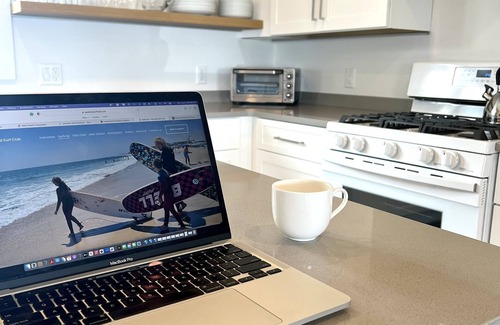 This ocean view cottage is directly across the street from the beach. Bring your Surf or Paddle Boards!!!! And walk down (200 yards) your semi-private path (shared with only four homes) to one of the most pristine white sandy beaches in Montauk. Imagine not having to deal with Ditch Plains parking! But a Beach pass is included ($500 value) to explore other Town ocean and bay beaches as permitted! This cottage with two bedrooms has an updated open living and dining area. It's a short distance to town (you can walk) and is near some of the best restaurants. It's beautifully decorated and includes TV and WiFi for remote work. Ideal for couples or small families. There is outdoor furniture, a table for 6, and a Nexgrill gas grill.