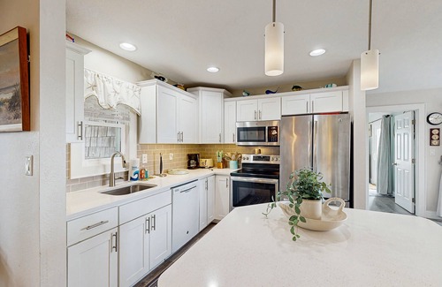 The stove supplies convection as well as conventional baking. No need to pack all your food from home, you are minutes from a fully-stocked grocery store and if you don't plan on cooking you are within walking distance from several excellent restaurants. Beach Glass offers three HDTVs with Roku streaming available and YTTV, as well as secure wireless high-speed internet access. An ironing board and iron are available for your use.