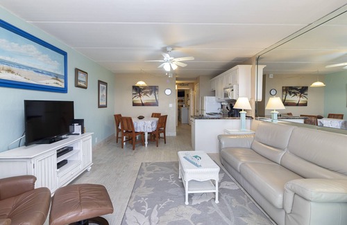 This pristine piece of heaven is just what you are looking for, seconds from the beach, the, pool, restaurants, bike and surf rentals or just sit outside and gaze at the majestic sunrise or you can walk upstair and watch the spectacular sunset In the many condo's that are ocean front listed they are long walks to the ocean, not mine, it is a 2minute walk so carrying beach toys is a breeze. The beach is fine white sand and great for a leisurely walk. Beachers has a large heated pool for those that prefer not
