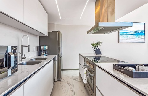 This luxurious oceanfront condo at Maritima is your ticket to carefree coastal living. Enter the immaculate space via a private elevator and step into a world of high-class elegance with top-of-the-line appliances, sleek modern design, and stylish decor providing all you need for beachside bliss.
