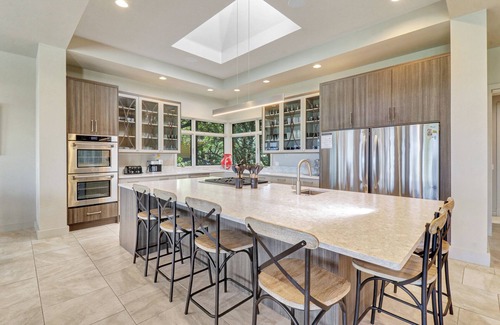 There is no need to look any further than oceanfront Beachside Bliss for your next family reunion or friends’ getaway, as this one-of-a-kind, 8,000-square-foot luxury home will spoil everyone lucky enough to come along! As soon as the sun comes up, your days will be filled with island fun in the oceanfront pool with a spa and a hot tub. A few feet away, the private beach access will be the cherry on top for beach lovers.