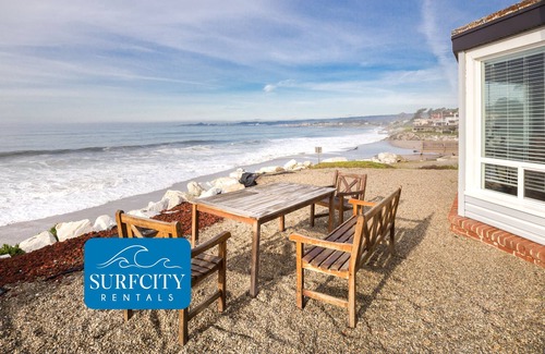 Soak in the breathtaking views from this ocean front location in Pleasure Point! Enjoy the sunrise, sunset, and all day long 180-degree ocean views from this awesome beach-front house!