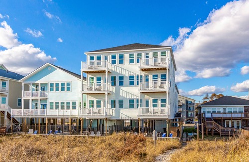 Built in 2022, this ocean front property officer 12 bedrooms with 12 bathrooms provides our guests with unparalleled privacy to enjoy time away from the group when desired. Three decks offer the epitome of ocean views. Enjoy the ocean/beach view while preparing meals for your friends or family. Public beach access is right beside the property so within seconds your toes are in the sand.