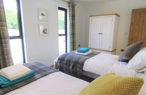 As you enter the property you will immediately appreciate the light and space. There is an open-plan lounge/kitchen/diner with French doors to outside, and the cosy sofa sits in front of a Smart TV and a wood burner. For those wishing to cook, the kitchen is well-equipped and offers an electric oven and hob, microwave, fridge/freezer, dishwasher and washing machine. The rest of the property comprises of two spacious bedrooms, a king-size with French doors to outside, and a twin zip-and-link (which can be made into a super-king-size on request). These are serviced by a fabulously contemporary bathroom with bath, separate shower and WC in a wet room with increased accessibility.