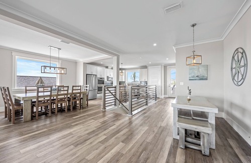 We have built this luxurious coastal style 4500 square foot home for large groups of families and friends traveling together and we have thought of your every vacation need! Outside you will find plenty of parking, a spacious 14x30 pool with lots of seating and your own private boardwalk to the beach!