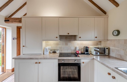 Unlace your walking boots or slip off your beach shoes to find a warm welcome inside the property. With airy accommodation, featuring neutral decor and plenty of windows, the holiday home still presents an abundance of original features, such as high, vaulted ceilings and exposed beams. At the heart of the abode is a spacious, open-plan lounge/kitchen/diner where you and your friends or family can spread out and spend quality time together between your adventures. Head down to the comfortable seating area to sink back into a sofa in front of the roaring wood burner. Find a movie for everyone to enjoy on the TV or play a game together after dinner. The cleverly arranged, country-cream kitchen provides ample storage and food preparation space. Discover all the equipment you need in here too for when you come to rustle up home cooked meals for your nearest and dearest. Be sure to take in the views from the table beside the windows as you enjoy your meals. The relaxing palette of soft, neutral shades continues throughout the bedrooms. Choose from a sumptuous king-size, double or twin bedroom, each of which benefits from an en-suite shower room.