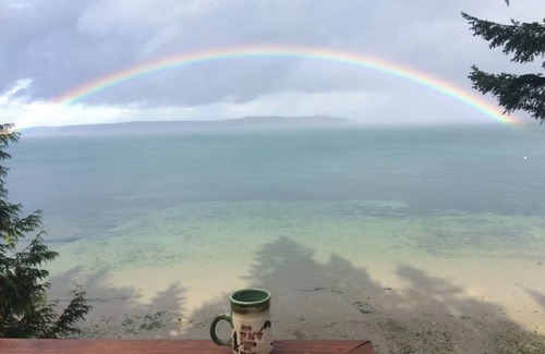 With newly improved beach access and a meditation deck --- you can enjoy coffee with a view or keep track of the tide charts for some fun beach combing. At low tide, you may see geoduck farmers working the farms on the neighboring beach properties -- in case you are wondering what all the nets or pipes are - just some local shellfish farming! Enjoy walking along the beach on low tides; you may catch a glimpse of Mt. Rainier out to the right.