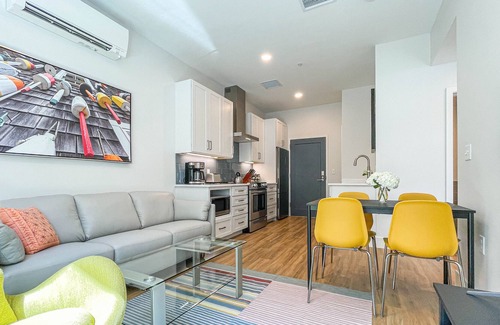 This furnished apartment has an open living, dining, and kitchen space with refrigerator, electric range, dishwasher, microwave, drip coffee maker, washer/dryer, and constant air exchange. Five India is equipped with all the basic amenities to meet your needs.