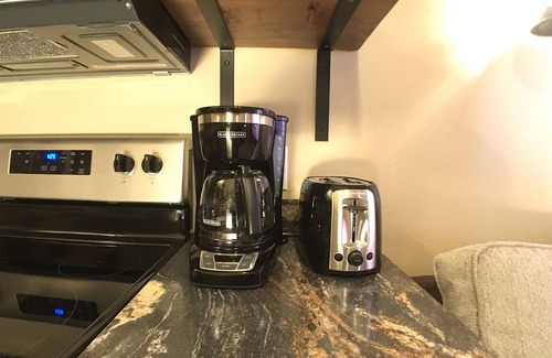 The full kitchen includes all the basic cooking utensils you'll need with dining space for the group, the living area has a comfy sofa sleeper to relax, or stream your favorite shows on the 50" smart TV, enjoy free programming on the Roku channel or feel free to sign in to your account on subscription based channels. (Just be sure to sign out before departing).