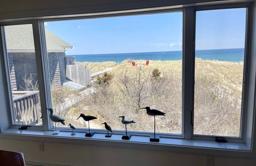On A Private Sandy Waterfront Beach. Enjoy the sunset into the Ocean waters all summer long from your own back yard deck and from almost every room in this totally remodeled and beautifully decorated home. This beautiful 4 bedroom home is located directly on Cape Cod Bay and has it's own magnificent private Beach and has unobstructed ocean views all the way to the cliffs of Plymouth and as far as your eyes can see. Enjoy nearby Whale Watching and Seep Sea Fishing