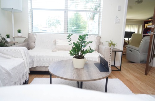 This is a beautiful 4 bedroom and 2 bath home with 3 bedrooms and 2 bathrooms dedicated to you and your guests. The 4th bedroom will not be available. You will have the following: