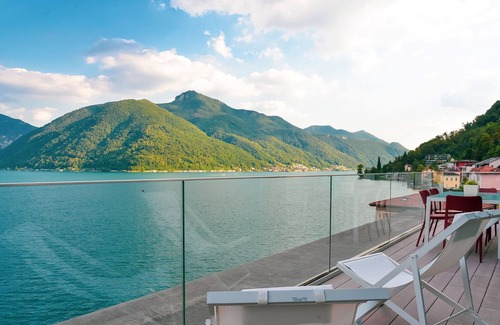 Spectacular and modern lakefront penthouse, bright and spacious in every space. Consisting of two double bedrooms and three bathrooms, it is certainly the ideal accommodation for all those looking for a unique, private place and above all with a 180 degree lake view. Equipped with all comfort and a huge panoramic terrace. Manage by Feel Ticino Feel Home (Local company), few steps from the lake and the main tourist. Private parking space available included!!