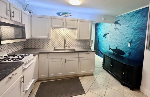 Enjoy boaters heaven amenities including a 35 ft boat dock, ice machine ( extra charge for water), fish cleaning station, outside bait freezer, dock water and electric plus trailer parking. Relax on the upper deck, shaded back porch, or in the reading corner. With ample space, 3 king beds, 1 bunk bed (twin/full), 3 sofa beds, kayaks, game table, and a fully equipped kitchen with granite countertops on both floors plus all the comforts of home—AC, WIFI, and laundry facilities. The Grand Tortuga is your perfect Keys experience escape!
