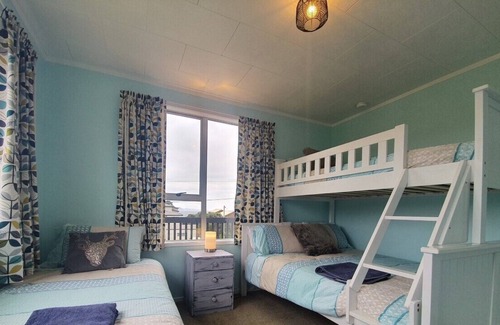 Our relaxed family friendly 3 bedroom holiday house is in a peaceful location overlooking Opito Bay. It has stunning views night and day of Mercury Islands.