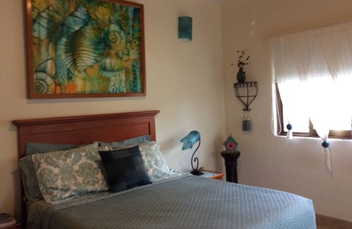 If you've heard of Ajijic (on Lake Chapala), you know about its near perfect climate. If you know how to pronounce it (Aheeheek), you probably know why it is a favored destination for snow birds, sunbirds and ex-pats. Here you can enjoy and afford the good life with a Mexican twist. Within walking distance to the colorful village of Ajijic, El Dorado offers the finest resort style living in the area. Although the gated community is safe, there is a professional 24 hour security team. My home is a fairly large single family villa on one level with additional outdoor living space plus a covered roof top mirador. Streaming with sunlight on all sides, the open floor plan adds a feeling of spaciousness. The two bedrooms and marble en suite bathrooms flank each wing offering privacy should you have overnight guests. Excellent mattresses with dense foam toppers and high-quality bedding insure you comfortable sleep. The fully equipped kitchen has everything from a coffee grinder for brewing local organic coffee, to a Magic Bullet for making refreshing smoothies. Or pop popcorn for movie night. Of course there's a microwave for reheating the leftovers from last nights dinner at Adelita's or any of the many other outstanding restaurants. Clean, purified water is supplied with a six stage filtration system including reverse osmosis.
