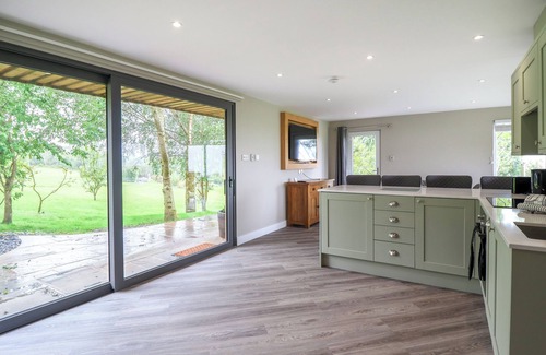 Orchard Lodge consists of an open-plan living space with a kitchen with microwave, kettle, toaster, coffee maker, fridge with ice box, electric oven and hob, and dishwasher, dining seating for four, and a sitting area with TV with FreeSat. King-size and twin (zip/link) bedroom. Highchair and travel cot available upon request (cot linen and additional mattress not provided). Shower room with walk-in shower, basin, and WC. WiFi, fuel, power, bed linen, and towels are included. Private rear patio with furniture, barbecue, wood-fired hot tub, fire pit, and off-road parking for two cars. Two well-behaved dogs welcome (to be kept off the furniture), for an additional charge of 15GBP per dog. Sorry, no smoking. Shop 4.2 miles, pub 1.6 miles. All of this awaits at Orchard Lodge. Note: An outdoor dog wash is available on-site. Note: Additional 32GBP charge for logs/kindling, payable for hot tub when requested. Note: Guests can request hot tub to be lit before arrival. Note: There is a Good Housekeeping Bond of 250GBP.