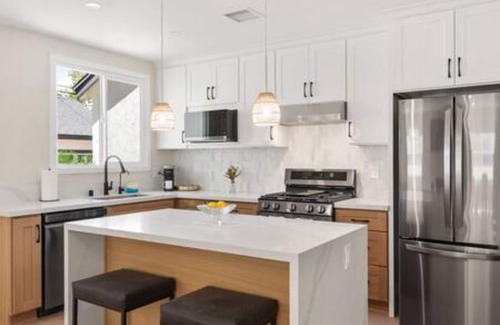 Discover a 5-bedroom, 4-bath pool home nestled in the heart of Long Beach, just a short 15 minute drive from the beach. This sunny abode features modern, earthy accents and unique paintings in every room. It also features a refreshing, heated pool and spa with relaxing sun chairs to bask away in the California sun. The well-equipped kitchen and living space provide comfort and a unique space for large groups to enjoy. Book now for a fun and comfortable getaway in downtown Long Beach!