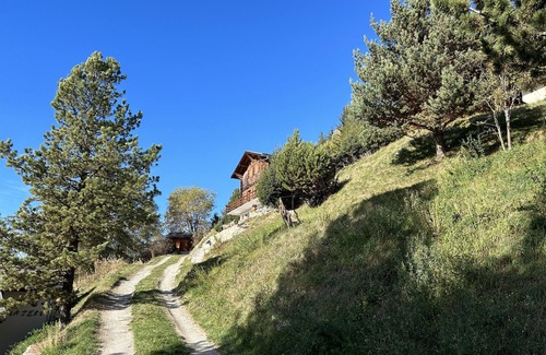 Outside: duplex apartment in chalet, for 8 people, balcony, large terrace with barbecue and garden f | Ski Chalet in St-Luc, Switzerland