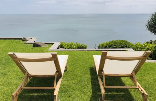 When you enter the house - the open plan living area has huge floor to ceiling windows which open out on to sun drenched deck with a lawn that stretches out towards the sea. The setting is extremely private and exquisitely beautiful.
