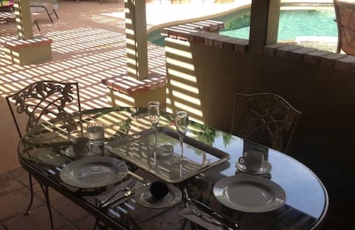 The home did NOT disappoint!. The pool and lush and private garden was truly an oasis in the desert for us. The photos online represented the grounds and home very well. The home is well appointed, stylish and comfortable. We felt right at home instantly. The location was superb for accessing Palm Springs and the vicinity. Our gracious host was easy to communicate with, made the experience easy and offered solutions to any obstacle that may have occurred ( there were none). We experienced extreme heat while there, the garden and pool were a much needed place to rest and relax. Thank you so much Derol, your charming home was everything we hoped it would be. Jeri
