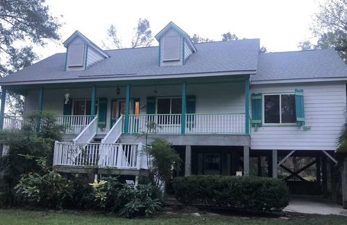 Special monthly rates also available September- March. Beautiful, fully stocked house on canal just off Weeks Bay. Home sleeps 9, with King Bed, Queen Bed, Full bunk bed and Twin sofa sleeper. Close to Fairhope & Foley. Gulf Shores beach is only 25 miles away. Home offers crab traps and 2 kayaks. Bring your own boat! With our boat lift and close boat launch your only minutes to being on the water. Grill located on terrace, just off kitchen, allows for easy access. Back sun porch offers 2nd TV and view of the canal. Great place to have your morning coffee. Wi-Fi and Direct TV.