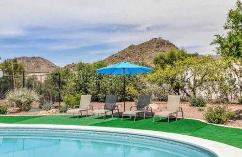 Welcome to this beautiful newly renovated Paradise Valley House with stunning views of Camelback Mountain, Piestewa Peak, Whispering Canyon, and Mummy Mountain in a exclusive and peaceful neighborhood. Short distance from amazing dining, shopping, nightlife, hiking, and golf! Private House equipped with 2 washer, 2 dryer and 2 full kitchens. Property includes heated pool*, pool loungers, umbrella, pool toys, basketball court and a small putting green.