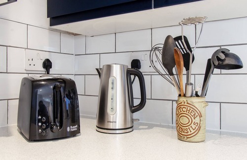 Prepare delicious meals in a fully equipped kitchen with an electric hob, oven, fridge/ freezer, kettle and cooking equipment.