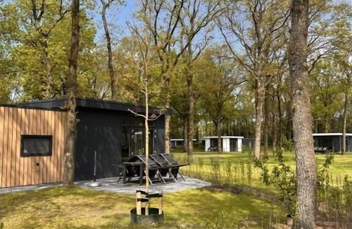 Inside, you can go well in the living room with an open kitchen, equipped with dishwasher, combimicrowave, Philips filter coffee machine and Philips kettle. The house has three bedrooms: one with a box spring double bed, one with two box spring bed beds and one with bunk beds. Modern bathroom and separate toilet. The holiday home is suitable for 6 people. As soon as the weather permits, you can stay on the private terrace with garden furniture and a large parasol outdoors. The garden around the pavilion is extensive and has a nice natural vegetation. The singing of many birds completes the vacation picture! On our website you can discover the many options in and around the park to spend a wonderful vacation that meets your individual wishes. When can we greet you in the Drentheland park and a cozy and pleasant stay on the edge of the NA