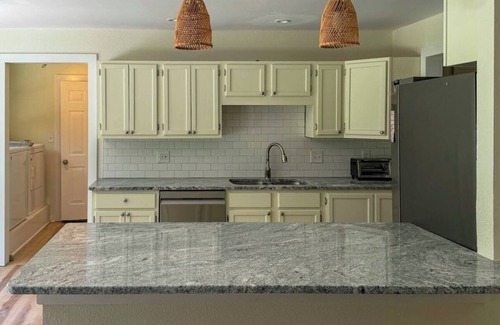 We invite you to bring the whole family to our dog friendly home. The back yard is fully fenced in.