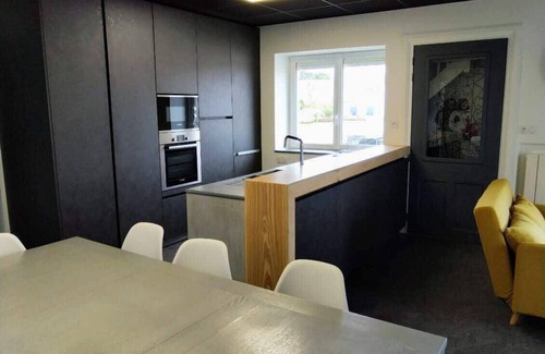 Charming renovated town house in Plougoulm, 1.5 km from the sea, near Roscoff and St Pol de Leon. Easy access via Morlaix train station or the N12. It offers a comfortable living room, a well-equipped open-plan kitchen, 3 bedrooms including 2 double bedrooms and a bedroom with twin single beds, a modern bathroom and separate toilet for your comfort.