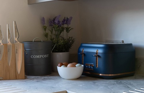 Cottage in a North Devon valley. Luxury stay with indoor pool, play area, and animals. Aylesbury Cottage: 4 guests, 4-star gold, cosy and modern, king-size bed, twin, private lawned area, and amenities. Perfect retreat. This is a delightful detached stone cottage positioned in front of a triangular courtyard, alongside two other cottages and the swimming pool building. On the ground floor, you'll find a cosy sitting/dining area with a wood-burning stove, a Bluetooth music system, and a Smart TV.