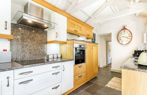 Elegantly decorated and environmentally friendly, the home still retains some of its original features, with exposed timber beams and a vaulted ceiling reminiscent of its humble past as a piggery and hay barn. Underfloor heating throughout as well as luxurious soft furnishings and a calming, neutral palette make for a truly relaxing space, with the first floor living room opening out on to a decked balcony that has far reaching views of the glorious Cornish countryside.