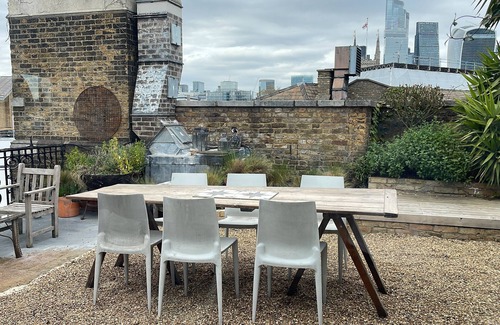 A stylish 2 bed 2 bath penthouse with garden terrace in the heart of Borough market. A perfect foodie paradise this stylish flat has a fully equipped kitchen, 2 king size beds and 2 modern bathrooms, 1 en-suite and Spacious living areas for the perfect London getaway with the kids or a brilliant city break with friends or loved ones. Super close to all the London sights such as Borough Food Market, The Globe theatre, Tower of London, Shard, London Dungeon, Maltby Street market, Bermondsey beer mile, The City and right on the northern and jubilee lines for easy travel across the capital. London is literally on your doorstep. Great for summer you can sit on the terrace and look up at the shard or across to Southwark cathedral or a great festive location for Londons Christmas markets and shows.