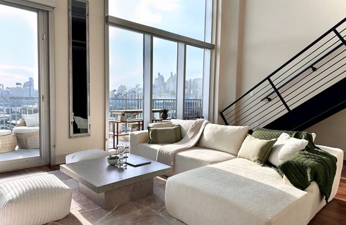 Our penthouse features two beautifully appointed bedrooms and one and a half pristine bathrooms, providing ample space for relaxation and comfort. The open floor plan, high ceilings, and meticulous cleanliness make this loft a sanctuary of luxury. Whether you're unwinding after a day of exploring or entertaining friends, this space offers the perfect blend of style and functionality.