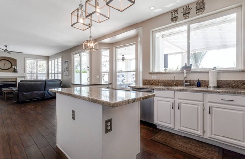If you're looking for an extraordinary backyard experience with a heated pool (Heated October through May) & hot tub on the water with beautiful views then make this your next getaway! Enjoy watching TV out on the covered back patio, grill up some burgers on the BBQ grill or after a long busy day take a dip in the pool (heated) or hot tub. There is a $60.00 per night pool heat fee that is automatically applied to each booking from October 1st through May 31st. Pool will not be heated any other month. (pool heat is automatically heated to 85 degrees),There are 2 kayaks for the family to enjoy out on the lake. You just take them right off the dock and away you go. It really doesn’t get any better than this. Whether you are visiting Arizona for the weather, golf, or spring training you will love our stunning waterfront home right on Arrowhead Lakes. It's conveniently located with quick and easy access to the loop 101 freeway making getting around a breeze. There are many restaurants, shopping, golf courses and hiking near by. A short commute to Scottsdale, Arrowhead mall, Tanger outlet mall, Westgate, Peoria Sports Complex, Coyote arena, University of Phoenix Stadium which is home to our Arizona Cardinals. Flagstaff and Sedona are only a couple of hours away so as you can see it's a great location!
