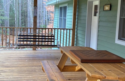 Back at the house, unwind on the front porch swing made from a ski lift, or let the kids enjoy the second ski lift swing on the property. Families will love the spacious lawn on a peaceful road, complete with a fire pit for evening s’mores and a private walking trail right behind the home.