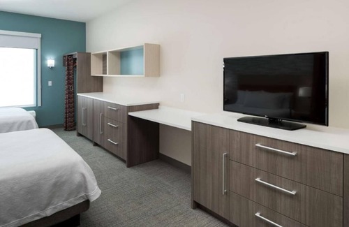 - Kitchenette with full-sized refrigerator, microwave, sink, and dishwasher;