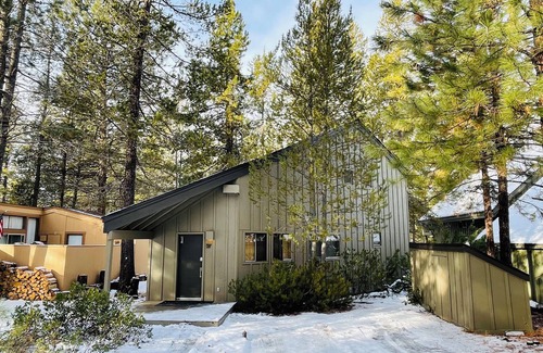 Welcome to this charming cabin in Sunriver. This superb property is only a short 5-min walk to the Sunriver Village. This home features 2 bedrooms which includes a kids’ room downstairs with a cozy bunk bed + trundle. Upstairs is a small loft with a twin bed and the primary suite with a queen bed. In all, our home can comfortably sleep 5. This welcoming cabin is perfect for small groups or families. Enjoy amenities like AC, heating, WiFi, cable TV’s, back deck with a BBQ, and a full-equipped kitchen during your stay. Relax in the living room and enjoy soaring vaulted ceilings and expansive views of the wooded commons area. We're happy to assist with any questions while you stay at our cabin.